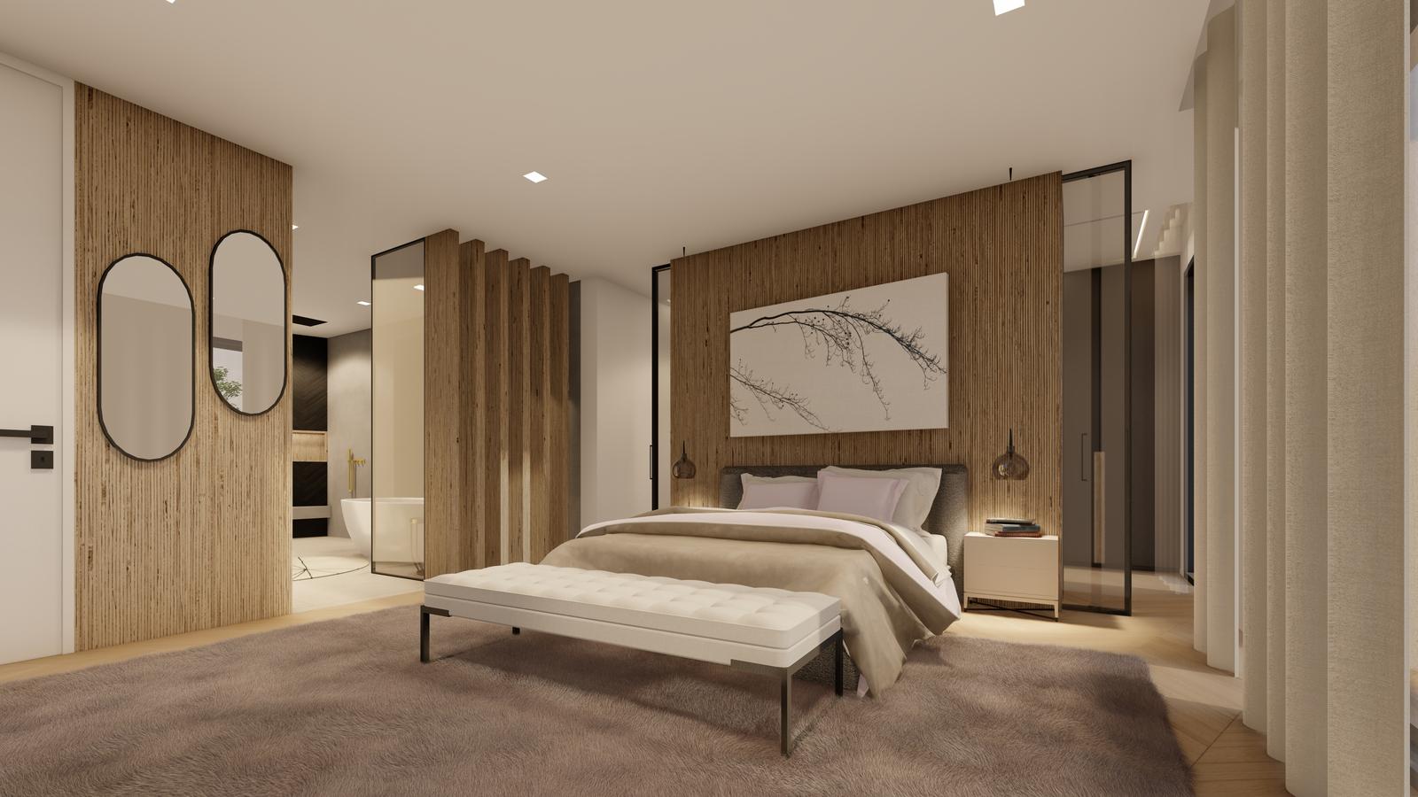 Every detail speaks of comfort and innovation: hydraulic underfloor heating and cooling throughout, a state-of-the-art Domotics system enabling complete smart home control, and five-star amenities including a hot tub jacuzzi, bespoke wine cellar, elegant bio-ethanol fireplace, home cinema, games room, library, office, and gym. The bedrooms feature walk-in wardrobes, and the home includes multiple garages to accommodate a luxurious lifestyle.