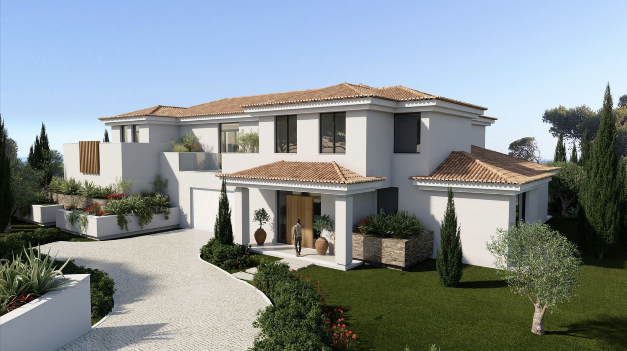 Designed with timeless elegance, the villa will feature 4 spacious bedroom suites, distributed across two floors plus a substantial basement level. The architecture blends classic Mediterranean style with sleek, contemporary elements, offering both sophistication and comfort.