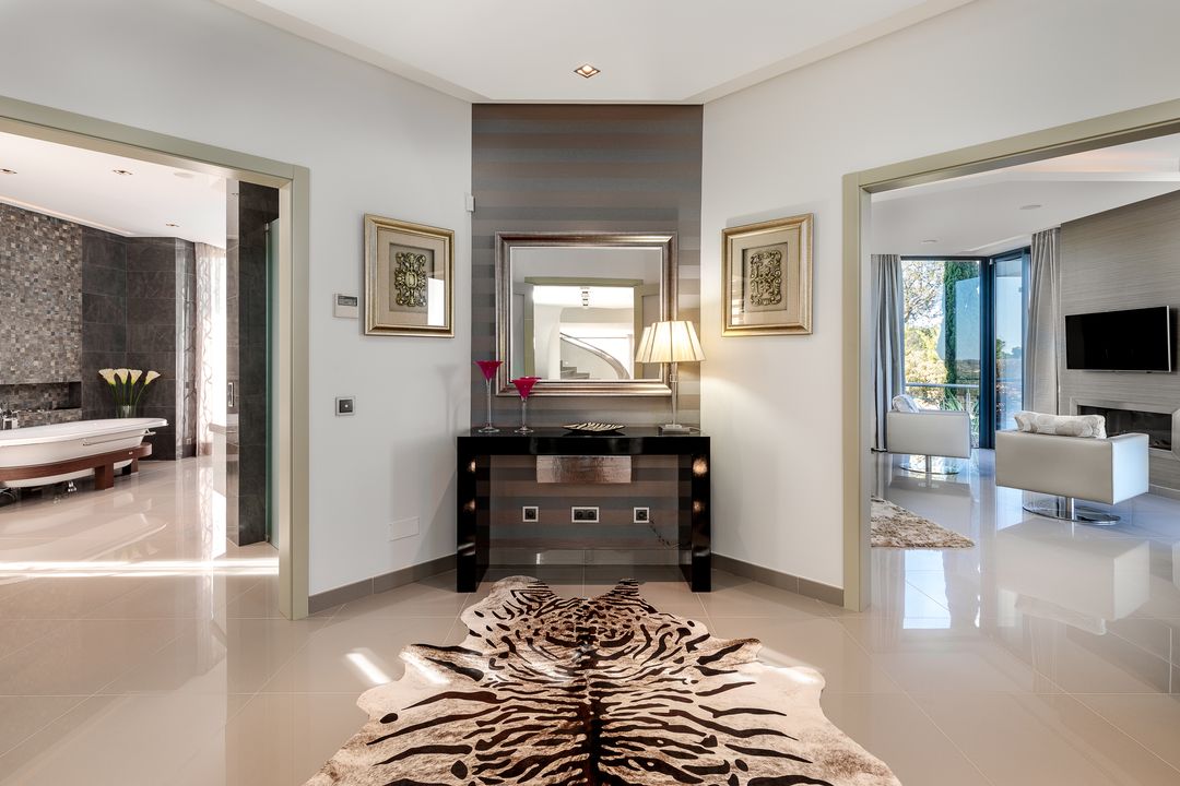 The villa is equipped with modern conveniences, including underfloor water heating and air conditioning throughout the house. Enhance your entertainment experience with the integrated sound system, or indulge in culinary delights with the state-of-the-art BBQ area. Additional features such as top-range gas fires, a basement bar, sauna, gymnasium, and solar panels for energy efficiency elevate the villa to unparalleled levels of luxury.